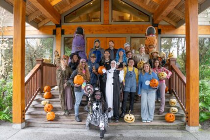 With Halloween just around the corner, we’re also getting ready for one of our favorite Lodge traditions: the Pumpkin Pipeline at Cox Bay. Every year, the staff dress up in costumes and paddle out to catch waves while a jury scores their outfits and performance. If you’re staying with us at the end of October, be sure to watch this entertaining spectacle from the warmth of the Great Room, and keep an eye out for the pumpkins carved by our team, displayed at the Lodge entrance.